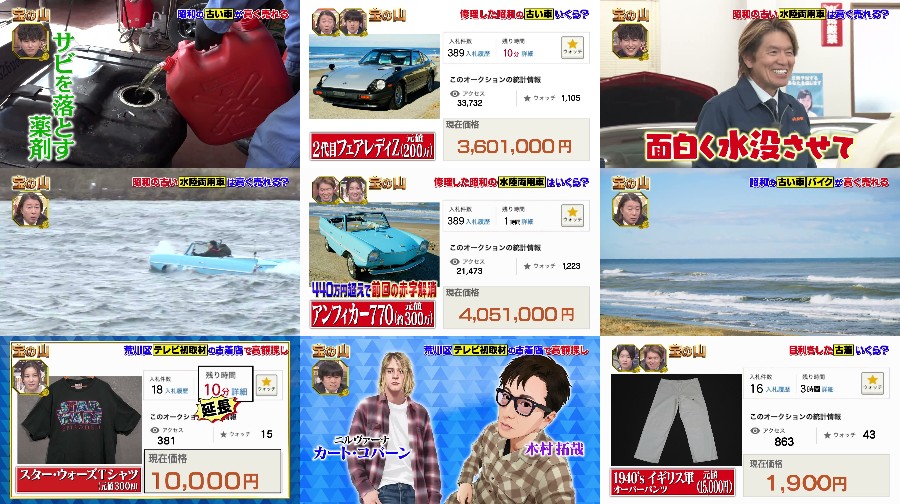 President Kato Koji and popular talents embark on a thrilling adventure, traveling across the country in search of hidden treasures. Their journey takes them to Niigata, where they discover a vintage car that they decide to repair at their own expense. Kato Koji also puts a classic Showa-era car up for auction, which may potentially set new records. Meanwhile, Imoto visits a legendary used clothing store in the downtown area, searching for valuable secondhand clothes among the vast collection. Additionally, Bakarhythm takes on a massive renovation project, transforming a vacant house into something entirely new. Will their innovative ideas and efforts lead to the discovery of a treasure trove? #TreasureHunt #VintageCars #SecondhandTreasures #RenovationProject #HiddenGems #JapaneseTV #TreasureTrove #AdventureSeekers