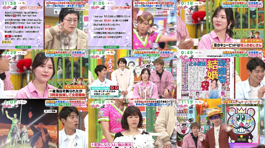 The show features a thorough exploration of the guests’ experiences, including their initial meetings and reunions. The hosts delve into the secrets behind their confessions, and the guests share their stories of sneaking around on dates and interacting with fans. The show also includes a fun karaoke segment where the couples sing their hearts out to popular songs. Additionally, the popular burger game takes a new turn, bringing more excitement to the show. The episode features a star-studded lineup, including Matsuri, Haraiichi, Godie, and more. #JapaneseTVShow #EntertainmentNews #CelebInterviews #KaraokeFun #BurgerGame #Matsuri #Haraiichi #Godie #JapanesePopCulture
